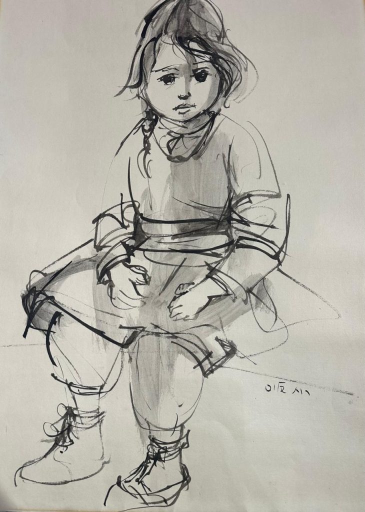 “The Girl” is ink-on-paper work by Ruth Schloss (1922–2013). It offers a glimpse into the Israeli Social Realism. As a pivotal figure in the development of 20th-century Israeli art, Schloss dedicated her career to documenting the marginalized, the displaced, and the vulnerable. This particular sketch, featured at Kings Gallery Jerusalem, exemplifies her mastery of the line.